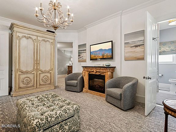 This beautifully appointed first-floor suite and deeded garage captures that same sense of comfort and sophistication A private Monmouth Avenue entrance leads into an inviting sitting room enhanced by custom window treatments, new carpet, and a working fireplace with heat, creating a warm and welcoming atmosphere year-round. The well-designed wet bar, paired with an armoire-style kitchenette, brings convenience without compromising the historic aesthetic. Offered fully furnished, the suite is truly turnkey for personal enjoyment or effortless rental participation.