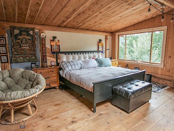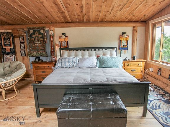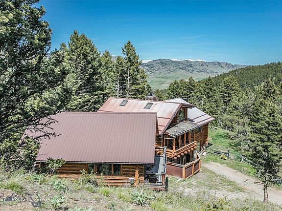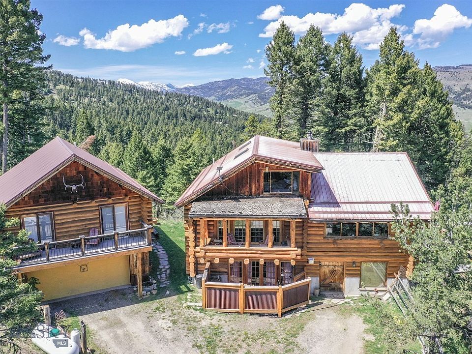 Nestled in the serene forests of Livingston, Montana, this exquisite Swedish cope log home offers unparalleled rustic luxury and breathtaking views of the Crazy Mountains and Bridger Mountain Range. Spanning over 22 acres, this idyllic property provides the perfect blend of privacy and accessibility, just a short drive from I-90. The main home features two bedrooms and two bathrooms, complemented by a chef's kitchen ideal for culinary enthusiasts. The heart of the home is a grand fireplace, masterfully crafted from Madison River rocks, creating a cozy and inviting atmosphere. Over the garage is a beautifully crafted ADU for extra space your company can enjoy or rent for additional income. Whether enjoying the panoramic mountain views or exploring the expansive grounds, this property is a true Montana treasure.