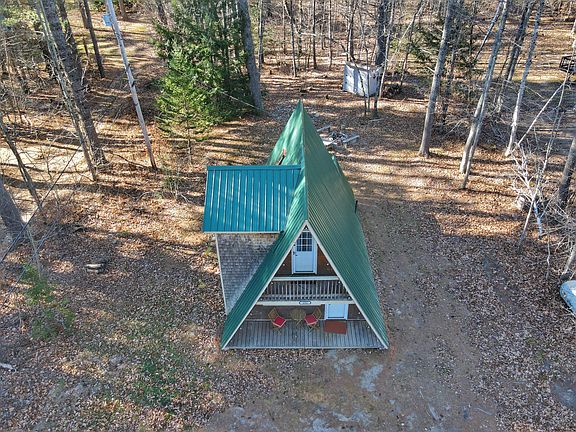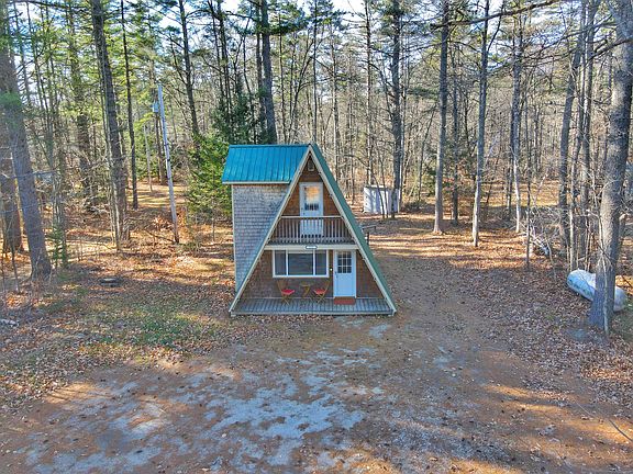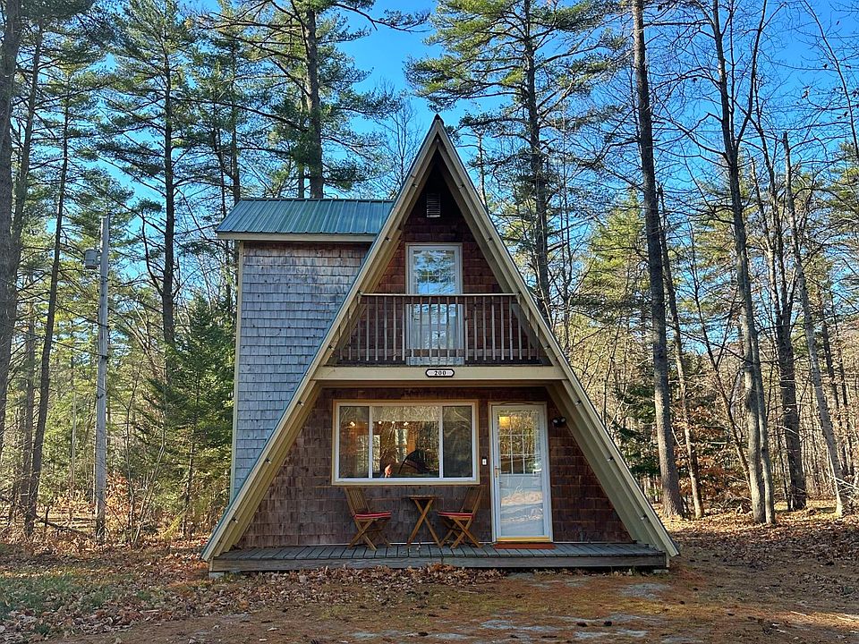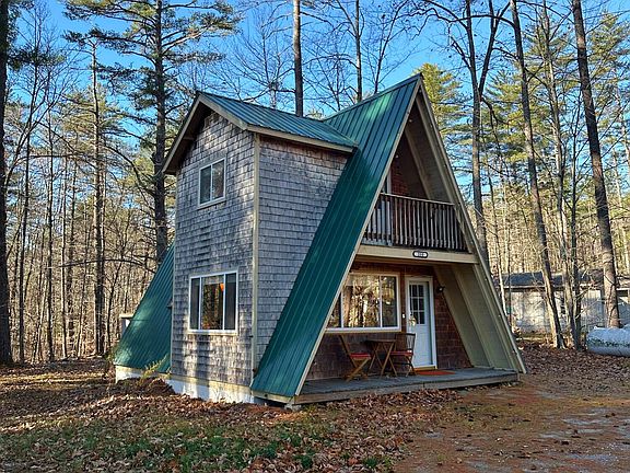 Recently remodeled and turn-key ready A frame with beach rights on Moose Pond. New septic, leach field and whole house water filtration system (regularly serviced) installed in 2021. Skylights, custom made built ins and tastefully done carpentry throughout. Perfect four-season home, camp, or Airbnb. Comes fully furnished for covenience. Optional $300 annual association fee provides water rights and beach access on Moose Pond. Fee is transferable and has already been paid until 10/321/2025. Ideal location for water recreation and nearby to Shawnee Peak for all winter sports. Beach rights are across the street from Pleasant Valley Road, just a few houses up from 200 Mountain Road.