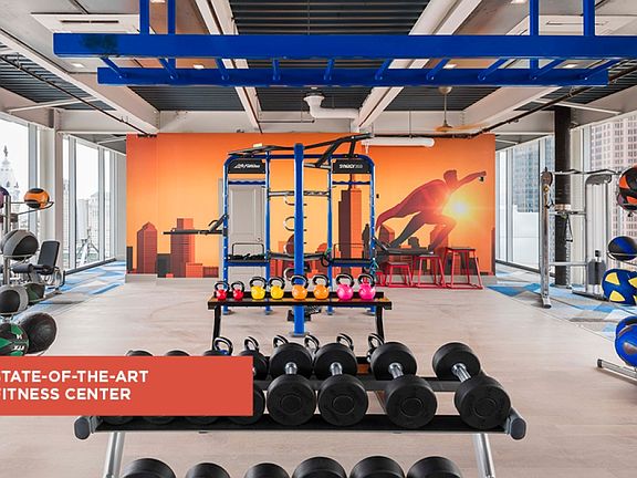 Our top tier amenities include: State-of-the-art fitness center, Peloton Cycle Studio, Yoga studio, Resident lounge featuring table games, big screen TVs, and WiFi, roof deck with panoramic views, outdoor fireplace, and grill, Indoor basketball court, Theater room, Resident bicycle storage with tools and pump, On-site underground parking available, On-site storage rooms available, Business center with private and collaborative work spaces, pet friendly with self-serve dog wash station and outdoor pet patch, 24hr front desk services, package concierge, on-site management office, 24hr emergency maintenance & an online portal for rent payments and maintenance requests.