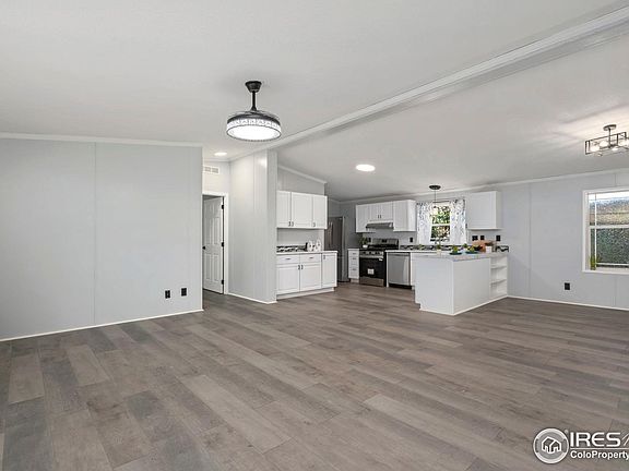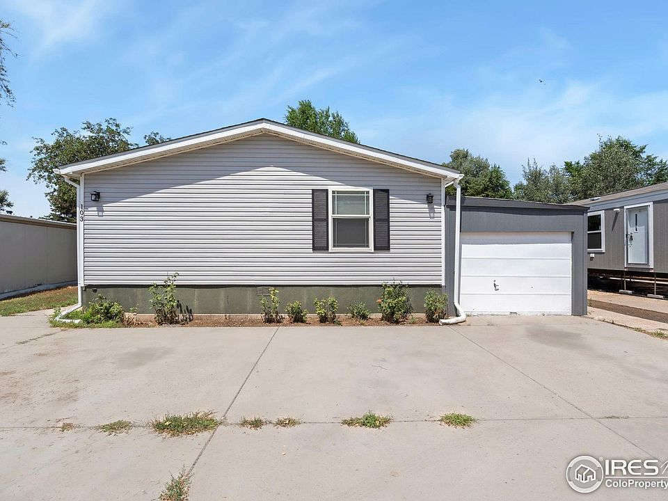 ***Seller is offering to cover the first month's lot lease with a strong offer! ***Live where comfort meets convenience! This fully renovated double wide mobile home has over $45K in upgrades, including a newer roof, AC, furnace, brand-new siding, & modern light fixtures. The spacious open floor plan features new flooring with added padding for comfort, remote ceiling fans in every room, and beautifully remodeled bathrooms. The kitchen boasts brand-new Frigidaire appliances, a 36" refrigerator, walk-in pantry, and oversized sink. This beauty is situated on a larger lot with 3 parking spaces, plus 1 car garage for extra storage, a private back patio, and just a short walk to the community pool and clubhouse. Enjoy nearby access to the Poudre River Trail and Poudre Ponds for paddle boarding, fishing or kayaking. You're also only 8 minutes to downtown Greeley and 4 minutes from the nearest dog park. This home has everything you need within easy reach. Schedule your showing today!
