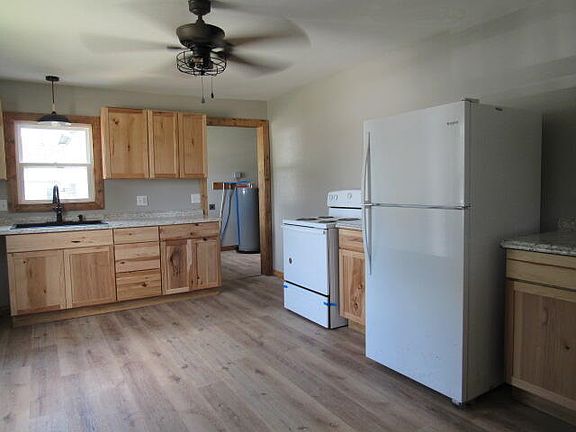 REMODEL COMPLETE! A cute 2 bedroom 1 bath home that has been remodeled including new Hickory kitchen cabinets, new Vinyl Plank flooring, some new sheetrock, granite kitchen sink and new windows.The home includes a range and refrigerator, split heating system and propane wall heater. It has a nice size laundry/mud room with a door leading to the back yard and a door going into the 1 car garage. The back yard is enclosed with a wood privacy fence.