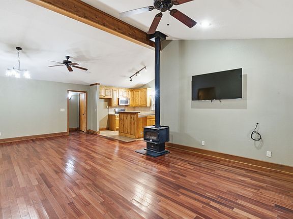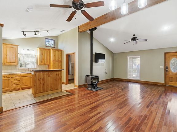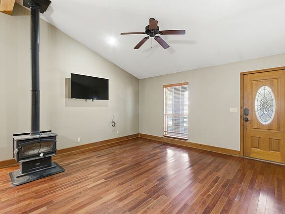 Welcome to this beautifully remodeled 3-bedroom, 2.5-bath home, updated in 2020 with modern, open-concept living spaces. The spacious living and dining areas feature a cozy wood-burning stove, perfect for gatherings. Inside, you'll find a mix of wood, tile, and carpet flooring, along with updated windows throughout for natural light and energy efficiency. The large master bedroom offers plenty of space and comfort.