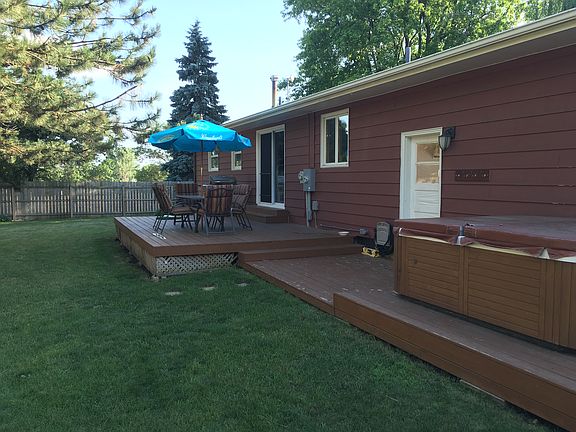 Fantastic Neighborhood! Extremely close to the city park/pool, golf course and school. The yard in itself is like a park! The backyard is fenced in with a brand new hot tub, play set and fire pit along with a great deck that walks in to your open kitchen. This is a super ranch with lots of square footage! 5 bedrooms with 3 on main and a full bath. The kitchen is set up perfectly for the cook in you with lots of cabinets and counter space, the adjacent dining room is large that will lead you into that fabulous backyard. The huge bright living room is perfect to entertain in or watch the neighborhood. The good-sized main level bedrooms have wood flooring and have nice closet space. Don't forget about the big family room in the basement - part of it could be a game room! The two-stall garage is heated! Come check this great home out as soon as possible as it will not be around for long!