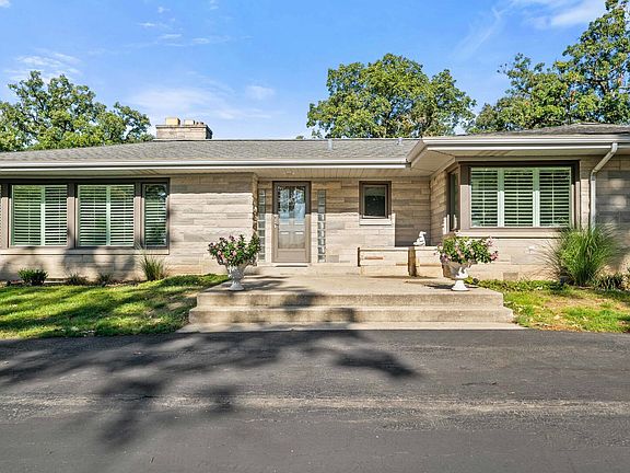 Welcome to this beautifully updated 4-bedroom, 2-bath brick ranch nestled on a peaceful 1-acre lot . This home blends timeless charm with modern updates featuring, hardwood floors throughout, and abundant natural light. The open-concept layout is perfect for entertaining, with a bright living area, cozy fireplace, and a spacious kitchen equipped with stainless steel appliances, a large dining area, and direct access to a large deck overlooking the serene backyard. Enjoy the warmth of a second fireplace in the expansive family room, complete with a built-in 100-gallon aquarium and space for a home workshop or future wine cellar. The partially finished basement adds flexibility. House has attached 2 car garage. Recent updates include windows and kitchen. Surrounded by mature trees and tucked in a private, yet convenient location close to parks, schools, shopping and expressways - this move-in-ready home offers space, comfort, and endless potential!