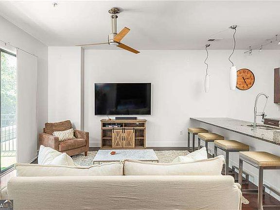 Live in the heart of Inman Park at Grinnell Lofts, where you have a front-row seat to the BeltLine and all the dining, shopping, and green space that make this one of Atlanta's most vibrant neighborhoods. Inside, a sleek contemporary kitchen features high-end Bosch stainless steel appliances, gorgeous granite countertops, and an entertainer's island that flows into the open living and dining space. Floor-to-ceiling windows and a spacious walk-out balcony fill the home with natural light and frame incredible city views. Soaring 10-foot ceilings and beautiful hardwood floors run throughout the main living areas, while cozy Berber carpeting adds warmth in the bedrooms. The primary suite offers a spa-like retreat with a double vanity, relaxing garden tub, oversized tile shower, and a professionally designed closet system for exceptional storage. The second bedroom includes its own generous closet and easy access to the guest bath. Additional comforts include in-unit laundry, abundant storage, and a dedicated covered parking spot. Life at Grinnell Lofts comes with secure keypad entry and access to a rooftop lounge with sweeping city views. Residents also enjoy a sparkling pool and a state-of-the-art fitness center through X3 Sports, complete with modern equipment and a full schedule of group classes. Just outside your door, you can walk or bike to neighborhood favorites like Krog Street Market, Ponce City Market, and Piedmont Park. This home blends style, comfort, and convenience with unmatched access to the BeltLine.