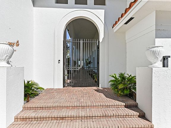 Experience waterfront luxury in this newly renovated direct Intracoastal home. Enjoy breathtaking views from the heated infinity-edge pool and spa, just above your private sandy beach. Inside, soaring 30-foot ceilings, marble floors, quartz countertops, Viking appliances, and designer finishes elevate every space. The grand primary suite features dual walk-in closets, a free-standing tub, and a private patio with panoramic water views. Updates include custom lighting, a quartz fireplace, custom closets, and Gray Malin wallpaper. A guest cottage with a kitchen sits off the gated courtyard. Impact windows, smart home technology, and a security system make it easy to monitor and control your home remotely. Dock your boat on the lift and walk to Old Key Lime House, Eau Resort, or the beach.