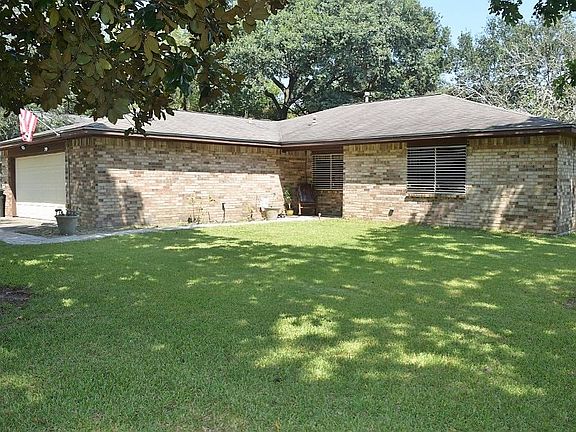 This very nice home sits on a huge corner lot with mature trees including a lemon, orange & pecan tree! Enjoy your morning coffee in the covered screen back patio. Over sized garage and extra wide driveway is perfect to park your vehicle, RV, or boat. Nice sized living room with corner fireplace. Open kitchen has plenty of cabinets & a large lighted pantry. Shed in the backyard and the riding lawn mower is negotiable. Convenient location close to 1-45!