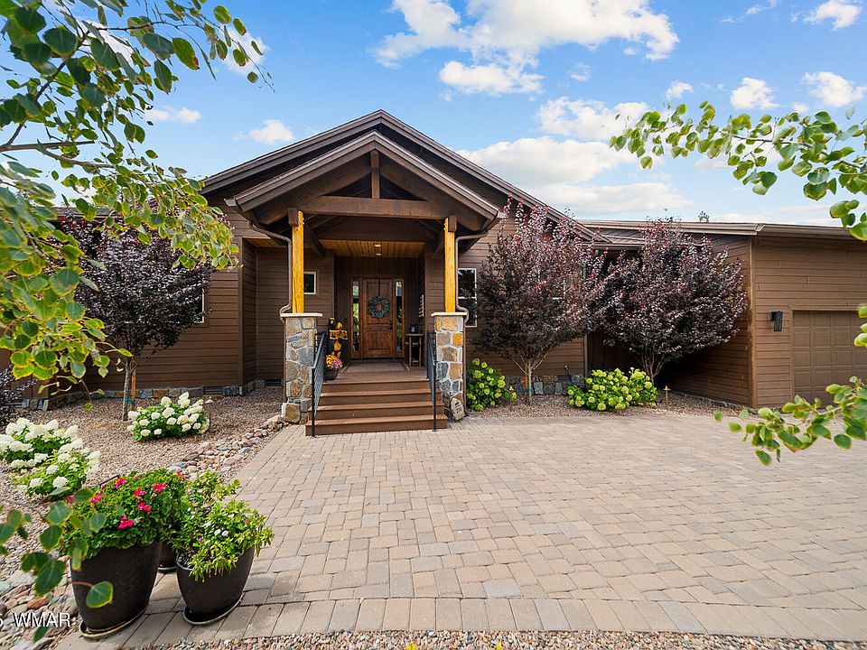 Exceptional mountain retreat custom built in 2022 is perfectly positioned at the end of a quiet cul-de-sac, nestled in the trees and overlooking the 13th tee of the Tower course. This comfortable home combines luxury finishes and thoughtful design. Enjoy the peaceful views and gorgeous sunsets on the 900 sf deck which has plenty of room for a large seating area, dining table & BBQ. Spacious great room with T&G ceilings, hardwood floors, stone fireplace and media wall. Adjacent kitchen is highlighted by a large island with a beautiful, rich granite countertop, complimentary quartz counters, wood cabinets, stainless appliances including gas stove, French door refrigerator, warming drawer & microwave. Large separate dining area, additional cabinets, wine refrigerator and (Continued) ...and pantry in main hallway. Primary suite features walk in closet, large shower and dual sink vanity. Both guest bedrooms are ensuite, powder room and cozy office alcove complete this very functional floor plan that is perfect for full-time residence or a seasonal getaway. Extra large 2-1/2 car garage with epoxy finish. The yard is beautifully landscaped with perennial & evergreen shrubs, aspen, flowering plum and maple trees all serviced by irrigation. Enjoy the benefits of the gated Torreon community with access to 36 holes of championship golf, gorgeous clubhouse, fitness center, pool, family center, pickleball courts, multiple dining options, and numerous community events. Seller is a licensed agent in the State of Arizona.