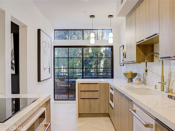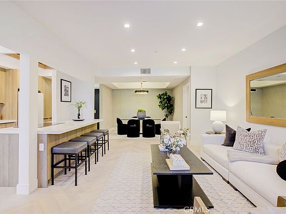 Step inside this designer renovated home and be captivated by the seamless white oak herringbone hardwood floors, creating an atmosphere of refined elegance throughout. The kitchen is a culinary masterpiece, featuring Italian porcelain slabs, Café appliances in a sophisticated white matte finish with upgraded brass handles, and custom cabinetry that speaks of meticulous craftsmanship. The bathrooms are a sanctuary of opulence, adorned with all-natural marble and stone flooring, high-end fixtures, custom cabinetry and the modern convenience of Woodbridge fully automated smart toilet-bidets. Every detail has been considered, from designer bathroom cabinet pulls to EmTek high-end door handles. Experience the luxury of custom closet systems, designer wallpaper, and grass cloth in the dining room, primary bedroom, bathroom, and laundry room. New washer/dryer appliances add convenience to your daily routine. The unit has undergone a significant transformation with the removal of a load-bearing wall between the kitchen and the living space, creating a true open concept. With a large island and peninsula accommodating six counter chairs. Illuminate your space with all-new recessed lighting, and step outside to a sprawling 450 sq. ft. patio, one of only six above-ground patios in the building. The patio features new brick and waterproofing, along with full landscaping and automated drip irrigation. Designer patio furniture is included. Additional amenities include a private storage unit in the garage and two side-by-side garage spaces. Enjoy the convenience of 24/7 valet services, security, and a dedicated concierge, ensuring that every aspect of your luxury living experience is seamlessly taken care of in this prestigious Beverly Hills residence. Other amenities include newly remodeled gym and recreation room, as well as pool and spa.