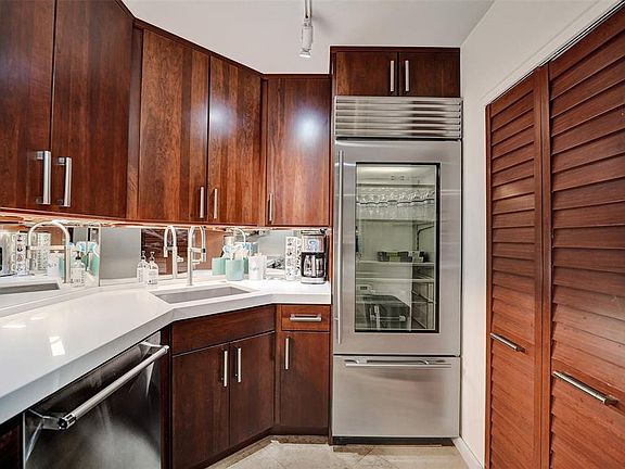 BEAUTIFULLY renovated 1 bedroom in popular Manor Grove Village Four, owner prefers to sell furnished, 675 credit score required, no land lease, only phase w/ pickleball and tennis courts, beautiful travertine floors, sub-zero fridge, high end kitchen w/ top of the line appliances, quartz countertops, private screened in patio, impact windows and door, large master bedroom, custom closets, new hallways-2023, new pool resurfacing pool furniture-2025, new sidewalks-2023, resurfaced parking-2025, few blocks from Wilton Drive with numerous restaurants, side walk cafes, coffee shops & nightlife. Mens & woman's saunas, clubhouse w/ community kitchen for your private parties. Large amount of guest spots for 2nd car. Required cable TV/Internet of $92.19 on top of maintenance fees, cats only.