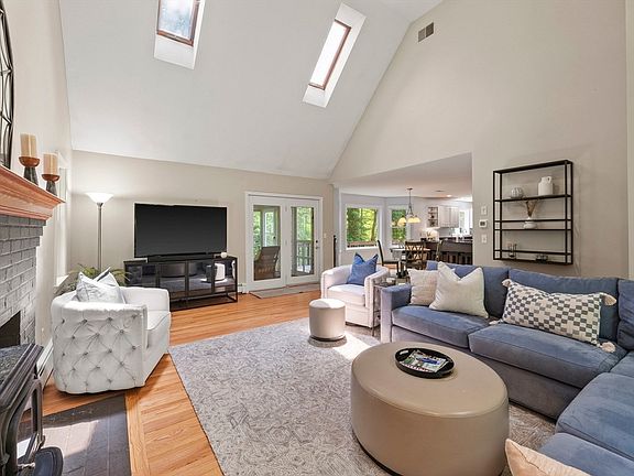 Tucked on a private cul-de-sac surrounded by woods, this expansive home offers space, style, and serenity. With 5 bedrooms plus a versatile flex room off the luxurious primary suite—ideal for a nursery, office, or yoga studio—and a dedicated first-floor office, there's room for every need. The soaring great room with fireplace flows from the kitchen to a screened-in porch and deck with tranquil nature views beyond. Completing the first floor are living and dining rooms to welcome guests from the airy foyer. The primary bath features dual sinks, a soaking tub, oversized shower, and walk-in closet. Four additional bedrooms, including one with en-suite bathroom. Beautiful finished walk-out lower level with glass door to a backyard that boasts a cozy gas stove and bar for effortless entertaining. The basement also offers a large exercise room and ample storage. Thoughtful features include a mudroom, second back staircase, and 3-car garage. A rare blend of comfort, convenience, and privacy