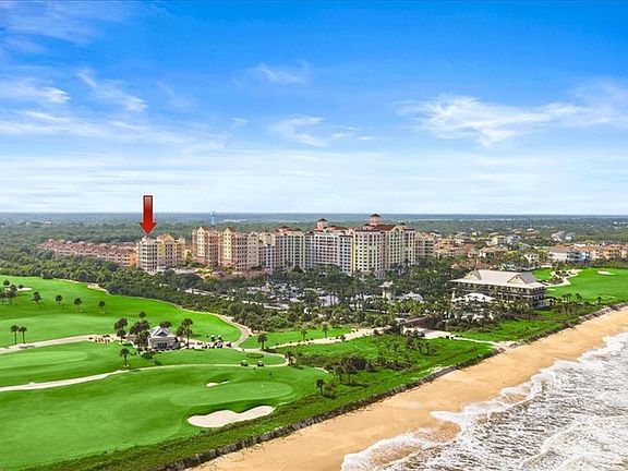 Perched atop the South Tower at Hammock Beach Resort, this 3-bedroom, 3.5-bath penthouse with a versatile flex room offers unrivaled privacy, refined comfort, and some of the most commanding ocean views in the entire community. The private elevator entry opens to a foyer framed by two guest suites, each with walk-in closets and ensuite baths. Across the main living area, travertine tile floors, tray ceilings, and crown molding highlight the craftsmanship that sets this residence apart. The kitchen is outfitted with granite counters, stainless steel appliances, tile backsplash, and a walk-in pantry, positioned to overlook the dining and living spaces. A wet bar with wine fridge, additional storage, and a gas fireplace add both function and character. Expansive sliding doors open to a balcony that captures unobstructed Atlantic views and looks directly over one of Hammock Beach’s seven pools. A set of French doors leads to the flex room, easily adapted for a home office, den, or overflow guest space. The primary suite extends to the balcony as well, and its bath features a jetted tub, walk-in shower, dual vanities, and separate water closet. A full laundry room with cabinetry completes the interior. As a member of The Club at Hammock Beach, you’ll have access to a resort lifestyle few places can rival: multiple pools including a lazy river and waterslide, a world-class spa and fitness center, tennis and pickleball courts, two championship golf courses, and a selection of upscale dining experiences. Whether you choose to enjoy this residence as a year-round coastal home or place it in the highly successful Hammock Beach rental program, it offers both an enviable lifestyle and proven investment potential—all with the Atlantic as your backdrop.