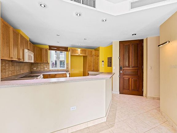 Beautiful 2-bedroom, 1.5-bath condo in the highly desirable Marbella Club at Palmas del Mar. This ground-floor residence offers the rare convenience of direct walk-in access from the beautifully landscaped courtyard, giving it a private and inviting feel. With 1,140 SF, the condo features a spacious kitchen with an eat-in area and a laundry closet, along with an open dining and living layout that flows toward two balconies. Both balconies have sliding doors that open onto a manicured lawn, bringing in natural light and creating an expanded sense of space. The primary bedroom includes sliding doors to the terrace, and an ensuite bathroom with double sinks, a tub, and a walk-in closet. The apartment offers an excellent opportunity for updates to suit your personal style, allowing you to tailor the space to your vision in one of Puerto Rico’s premier resort communities. An assigned covered parking space is also included. Enjoy 24/7 security, beach access, two resort-style pools, a fitness center, lush gardens, and all the amenities of Palmas del Mar.
