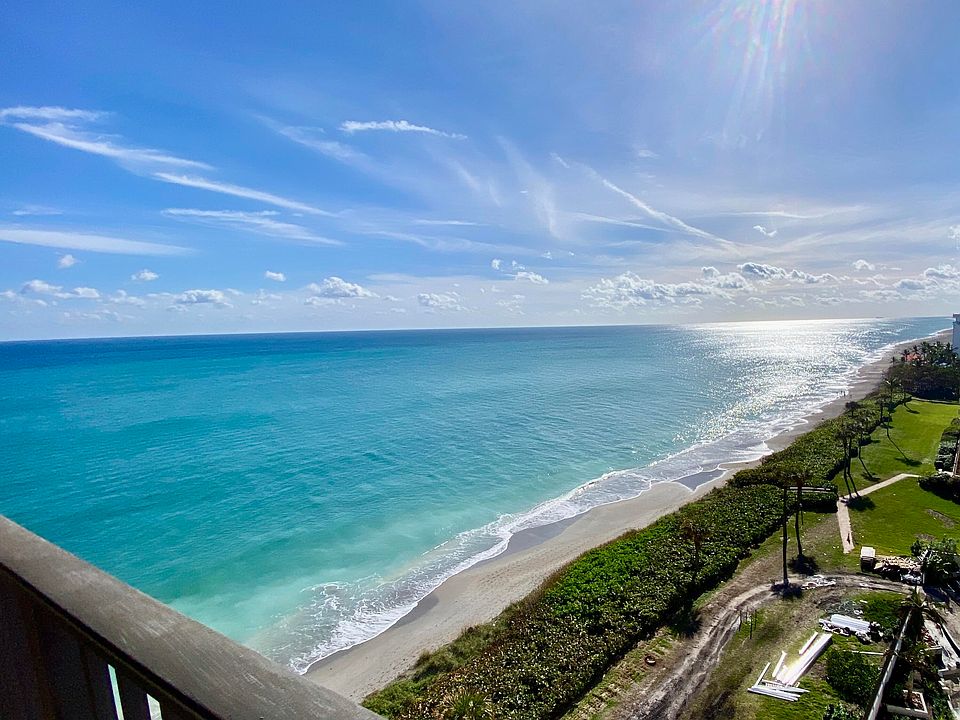 A rare vantage point offering sweeping ocean views from the Jupiter Inlet down to the Juno Beach Pier. This 9th-floor sanctuary has been fully renovated and furnished with refined coastal style. Both bedroom suites overlook the sand and surf, while the bright kitchen opens gracefully to the dining and living areas, all framed by blue-water horizons. Plus best POOL and SPA in Ocean TraiAll major building projects, including the $4M+ pool and garage restoration, are complete with minor rebar work being completed now. Ocean Trail delivers true resort amenities: two heated pools, new spa, saunas, grill stations, outdoor showers, fitness center, tennis, green spaces, ponds, trails, and private beach paths--plus a community golf-cart shuttle to local dining, shops, marinas.
