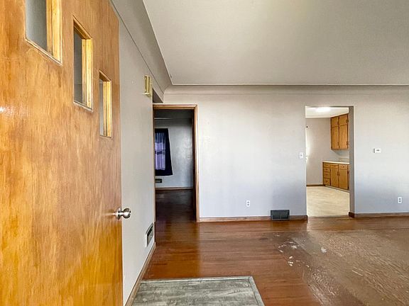 Located on a large corner lot close to school and park, this single-story home has 3 main level bedrooms, a spacious eat-in kitchen (all appliances are included), hardwood floors throughout, and an updated full bath on the main level. New shingles in 2015, new hot water heater in 2019, and updated steel siding and windows. Forced air furnace and central A/C. The detached 22' x 24' double garage offers great storage space. Lots of shade coverage throughout the yard with mature trees and plenty of backyard space for gardening and enjoyment!