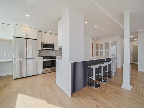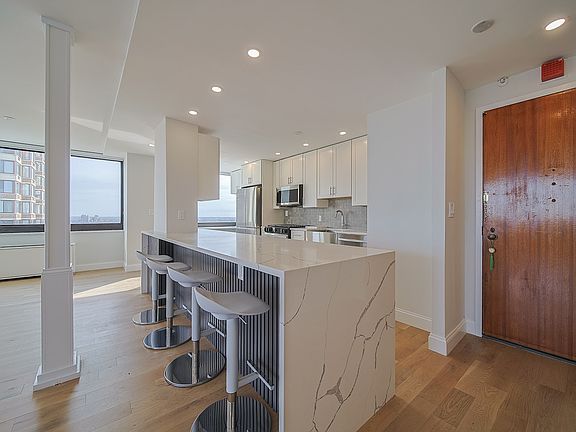 Modern doorsExpanded closetsElegant hardwood floorsHudson river viewSleek wide vanityWine refrigeratorSpacious layout