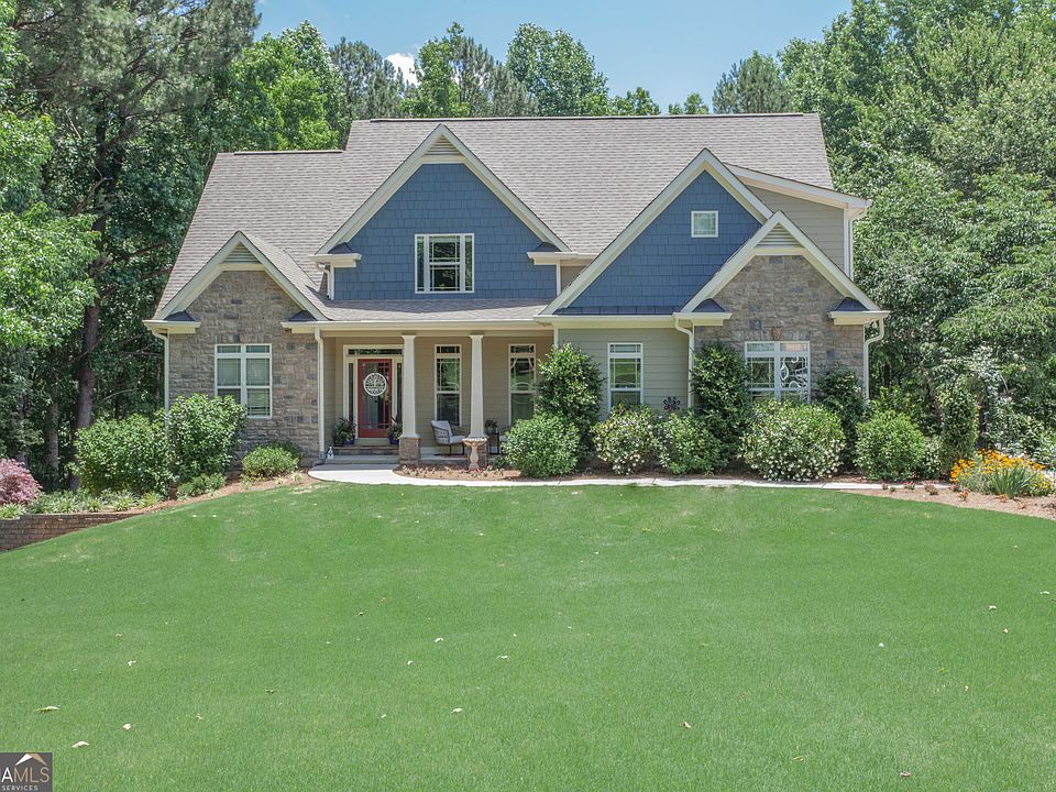 Here's a rare chance to live in beautiful Country Lake Estates, Carrollton's best kept secret! This Craftsman style home has amazing curb appeal, matched by a beautiful interior with Primary suite on the main. You will love the open concept living area with vaulted ceiling great room, breakfast nook and beautiful kitchen, which has natural counters and stainless appliances. Formal dining room, office, walk in pantry, laundry and half bath round out the main level. Three bedrooms and two full baths upstairs ensure plenty of space, whatever your needs. The finished basement sports a movie room! Two flex rooms and full bath complete the finished space. There's tons of basement storage, including a boat garage! Enjoy peaceful evenings on the back deck or cool mornings on the front porch overlooking the beautiful cottage garden landscaping. Bonus: Community access to the lake and dock. Make 200 Overlook Way your new home!