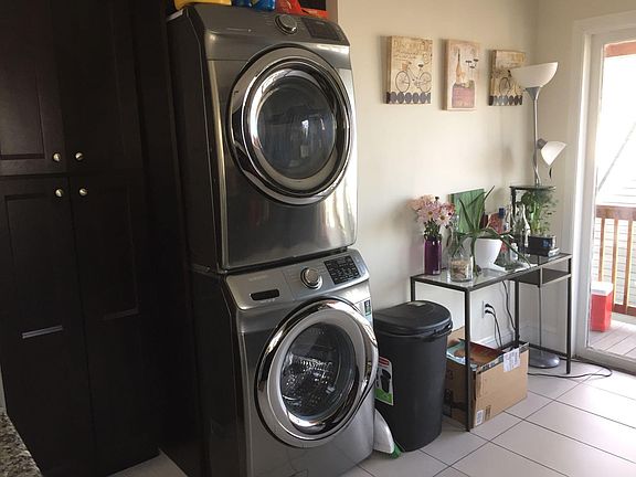 Spacious duplex unit, huge living area with hardwood floors, 3 season porch extends off the living room, eat-in kitchen with built in granite breakfast bar overlooks the living room, HE laundry in the unit, 2 full tile baths, walk in closets, spacious bedrooms and closet space