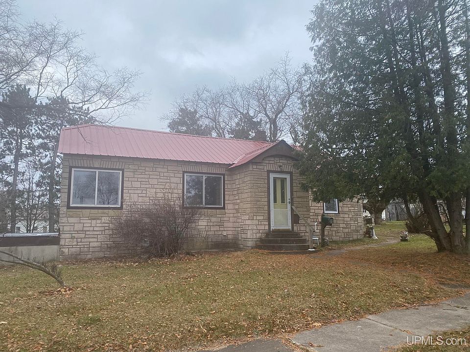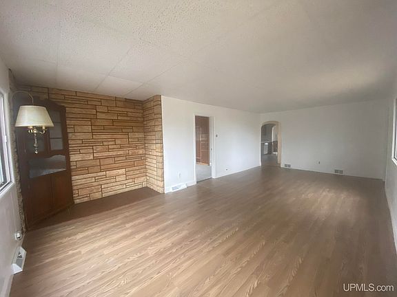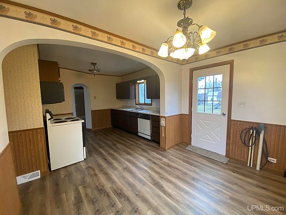 This 2 Bedroom 1 Bath bungalow home in Kingsford is situated on a corner consisting of 4 Lots, freshly painted interior, newer flooring except bathroom. Hook-up for laundry is currently in eat in area but could be relocated. Well maintained. Newer metal roof. Walk out from basement to garage. Abundance of storage space. Great find. Seller will review all offers December 7th 2022 and reply December 8, 2022