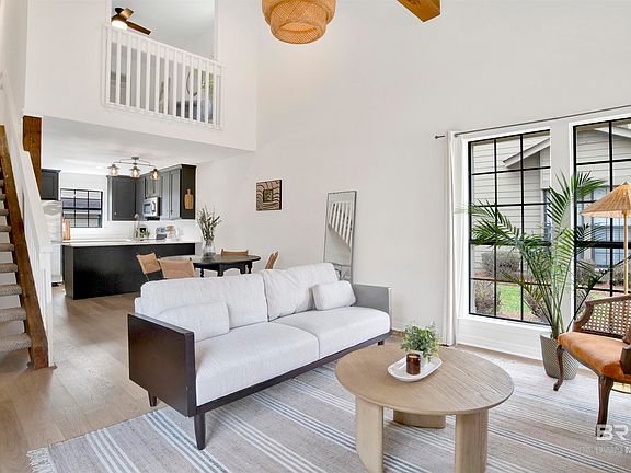Located in the Loma Alta community of Daphne, this updated 3-bedroom, 2-bathroom end-unit townhome offers both style and convenience. Featuring a NEW ROOF (2024), NEW FLOORING (2024), HARDIE BOARD SIDING, QUARTZ COUNTERTOPS, FRESH PAINT, and NO POPCORN CEILINGS, this home is truly move-in ready. The bright, open-concept living space includes an updated kitchen with quartz countertops, stainless steel appliances, shaker-style cabinetry, and updated lighting. The vaulted ceiling in the living room has charming bead-board detailing, a wood beam, and a coordinating mantle, adding warmth and character. The first-floor primary suite features an ensuite bath with dual vanities, while upstairs offers a spacious second bedroom and a versatile third bedroom/loft space, which can easily be enclosed for added privacy. Enjoy a private courtyard, ample parking, and close access to the recently remodeled, community pool (for townhome residences only, ensuring privacy). This low-maintenance gem is perfect for easy living, with the HOA covering yardwork and pool upkeep. Conveniently located just off I-10, you’re seconds from shopping and dining, 15 minutes to downtown Mobile and Fairhope, and just 45 minutes from Alabama’s white sand beaches. Plus, this quiet, well-kept neighborhood ensures a stable community feel with no short-term rentals allowed. This is the listing agents personal property and former primary residence. Buyer to verify all information during due diligence.