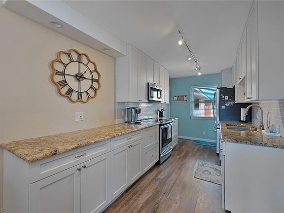 Get out of the cold and discover your dream winter retreat lifestyle in this beautifully appointed condominium found in the heart of Naples. This exquisite residence features coastal decor, luxurious wood-look vinyl flooring throughout, providing a warm and elegant ambiance. The updated kitchen, equipped with sleek stainless-steel appliances, is perfect for culinary enthusiasts and entertaining. This condominium boasts two spacious en-suite bedrooms, ensuring privacy and comfort for both residents and visitors. Enjoy breathtaking views from the 5th (top) floor, overlooking the picturesque Lely Hibiscus Golf Course ideal for golf enthusiasts and nature lovers alike. En shared laundry room and extra storage across the hall. Step outside to experience the resort-style amenities that this community offers, including a stunning pool and clubhouse which is perfect for social gatherings or relaxing weekends. Fairway Towers is close to world renown 5th Ave, beach access, shopping, and dining.