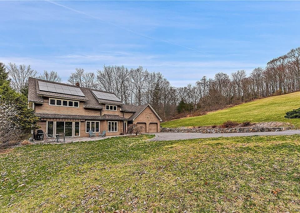 Welcome home to an open flow contemporary on grand property. Enjoy the lush, wooded space as soon as you drive up to this uniquely designed custom home. Front of home boast, stone patio with electric awning. Enter main foyer with access to "2" car garage. Main floor has open floor plan, surrounded by walls of windows. Kitchen, a cooks dream, w/ butcher block island for prepping, 6 burner cooktop, plenty of granite counter space; plenty of storage. Plus SUB ZERO refrigerator. Dining room/Living room flows together. Enjoy warmth of pellet stove and lots of storage with living room built-ins. Slate floors throughout main floor; NEW carpeting on second level. Second floor includes master suite with updated bath (2015) and walk in closets. Two additional bedrooms and updated guest bath (2016) complete upper level. Upper level landing large enough to utilize as an office. Large walk in attic above garage. Some updates incl, solar panels, electric fence, rock wall, roof, patio, driveway.