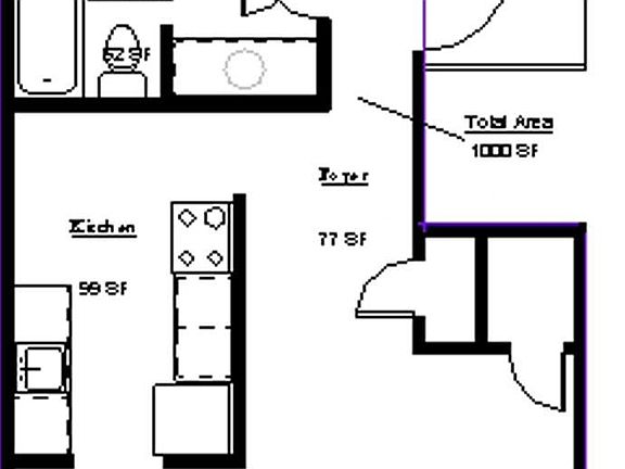 - Total interior livable area: 1,000 sqft