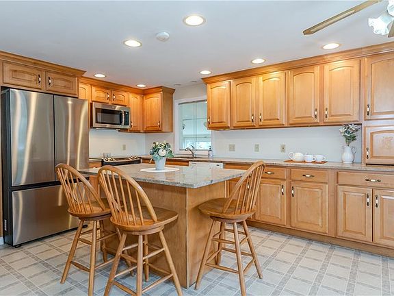 Beautiful stone fireplaceUpdated kitchenBright and cheery sunroomGranite countersSpacious islandWarm cabinetry