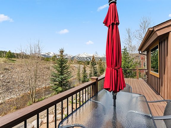 Step outside to professionally landscaped gardens, a flagstone patio, and the peaceful sounds of French Creek flowing mere steps from your patio. Take in stunning views of Breckenridge Ski Resort while enjoying your morning coffee on the deck or relaxing in the private hot tub.