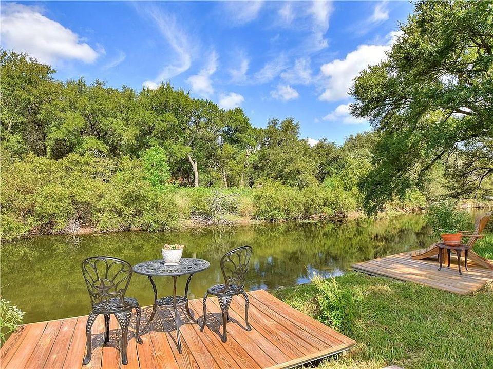 Peace and serenity await you in this stunning Hill Country getaway on private Lone Man creek front 1.25 acres. One floor living includes spacious gourmet kitchen, fabulous butlers pantry w/2nd dishwasher, wine fridge, ice maker, utility/craft room. Gorgeous master suite with sitting area, spa bath, jetted tub and massive walk in master closet w/built ins. Two more bedrooms, each w/en suite baths on main level. Flagstone deck spans the back of the home with hot tub, outdoor shower, perfect for star gazing and relaxing. Breathtaking views of the creek and wildlife from the back deck. Separate entrance to upstairs guest retreat, with large living area, en suite bath and private patio with creek views.