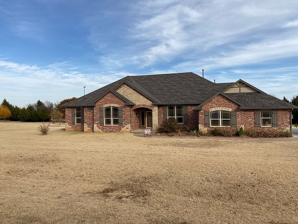 This 2784 square foot custom home built in 2013 by an award-winning homebuilder is a must see! Three bedrooms 2 1/2 bath with a large bonus or could easily be used as an extra large fourth bedroom. A new roof in September 2019 with 40 year Dent resistant shingles that allows buyer to qualify for up to 25% off homeowners insurance. Extra large walk-in attic with built-in stairs for easy access. Oversize driveway with extra large covered back patio. Kitchen has a large walk-in pantry with lots of cabinet space and updated appliances. Half bath has access to the back patio and it set up to be a pool bath. Large master bathroom with a corner jetted tub and a walk in full tile shower master bath also has a double vanity with a make up area in between and a large walk-in master closet. Living room has a gas fireplace with beautiful rock that is switch controlled. Home sits on a private lot in the back of the neighborhood and backs up to a nice wooded area. Home is just a short 16 minute drive from South Oklahoma City. Call to set up a showing! Sellers are only interested in selling FOR SALE BY OWNER. Buyer inquiries only. NO inquiries from realtors wishing to list and or sell the property please!