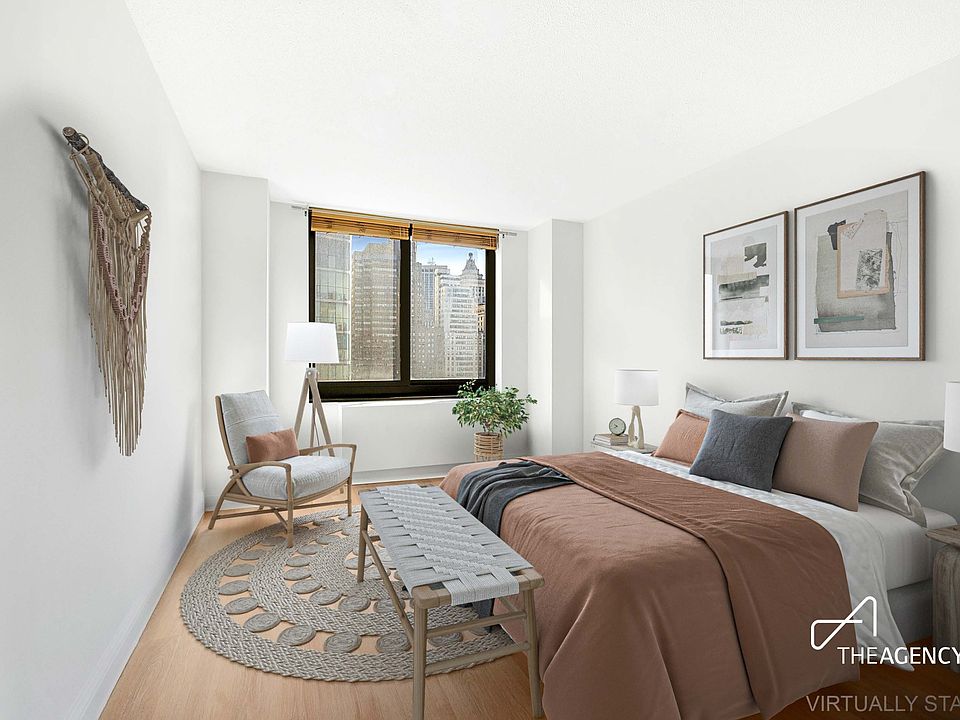 Perched on the 24th floor of Liberty Court, this bright one-bedroom apartment offers a rare blend of indoor-outdoor living with a private terrace overlooking the NYC skyline and out towards the Hudson River. The open-plan layout features a modern kitchen with stainless steel appliances, ample storage, and a spacious bathroom.