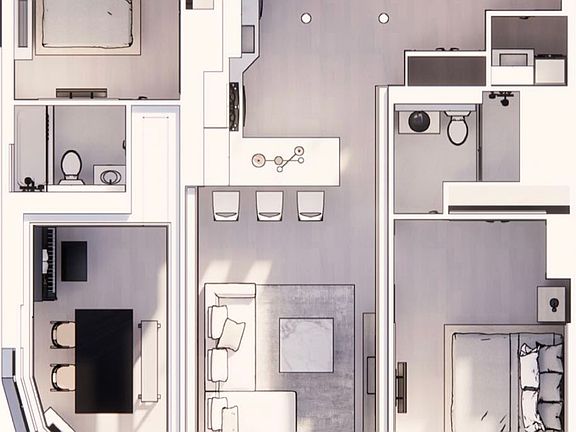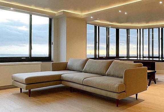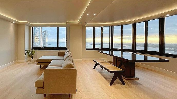 THE APARTMENT: November 2021 marked the completion of the full renovation of the unit. This apartment comprises a corner-oriented space with two spacious bedrooms and two bathrooms, walls of windows, and it boasts a South West exposure with excellent natural lighting. The kitchen was completely redesigned and constructed, with a soft segmentation plan, comprehensive construction transformations, new flooring, rearranged closets, renovated the bathroom, and installation of an in-house washer and dryer, along with improved indoor electrical lighting.