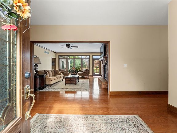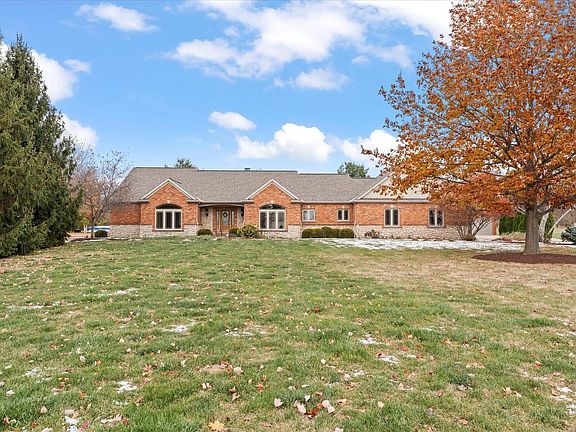 Welcome to this spacious 3-bedroom, 3.5-bathroom brick ranch offering comfort, functionality, and timeless style. A large entryway leads into the inviting living room featuring a beautiful brick fireplace with built-in surrounds, seamlessly connecting to the bright eat-in kitchen with ample countertop space and abundant natural light. The formal dining room, accented by elegant tray ceilings, provides the perfect setting for gatherings. A generous laundry room offers additional convenience with countertop workspace, storage, and a utility sink. The primary suite features tray ceilings, a walk-in closet with a custom organization system, and an en suite bath complete with double sinks, a built-in makeup vanity, a soaking tub, and a separate shower. A spacious office, two additional bedrooms, a half bath, and a full bath complete the main level. The unfinished basement includes a full bathroom and offers endless possibilities for expansion or recreation.
