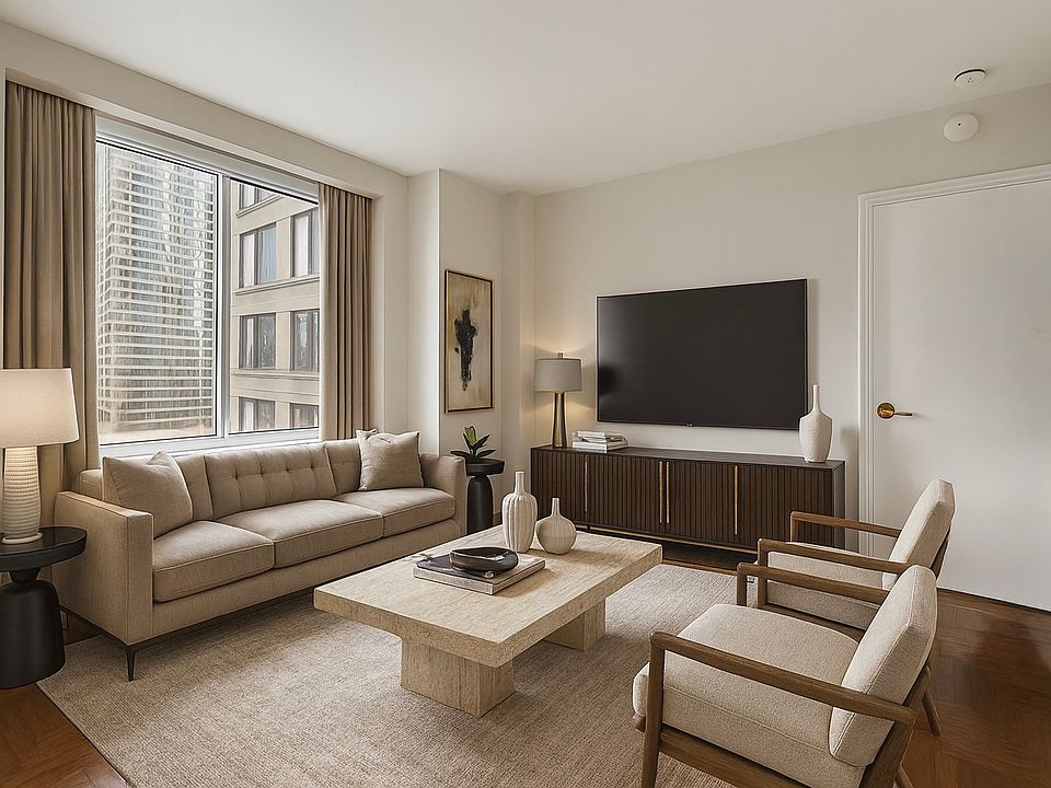 Welcome home to Residence 16H at 200 Riverside Boulevard, an impeccably designed, high-floor sanctuary offering exceptional space, light, and open city views. This expansive one-bedroom, one-and-a-half-bathroom home provides a perfect blend of luxury and comfort in one of the Upper West Side's most sought-after full-service condominiums.