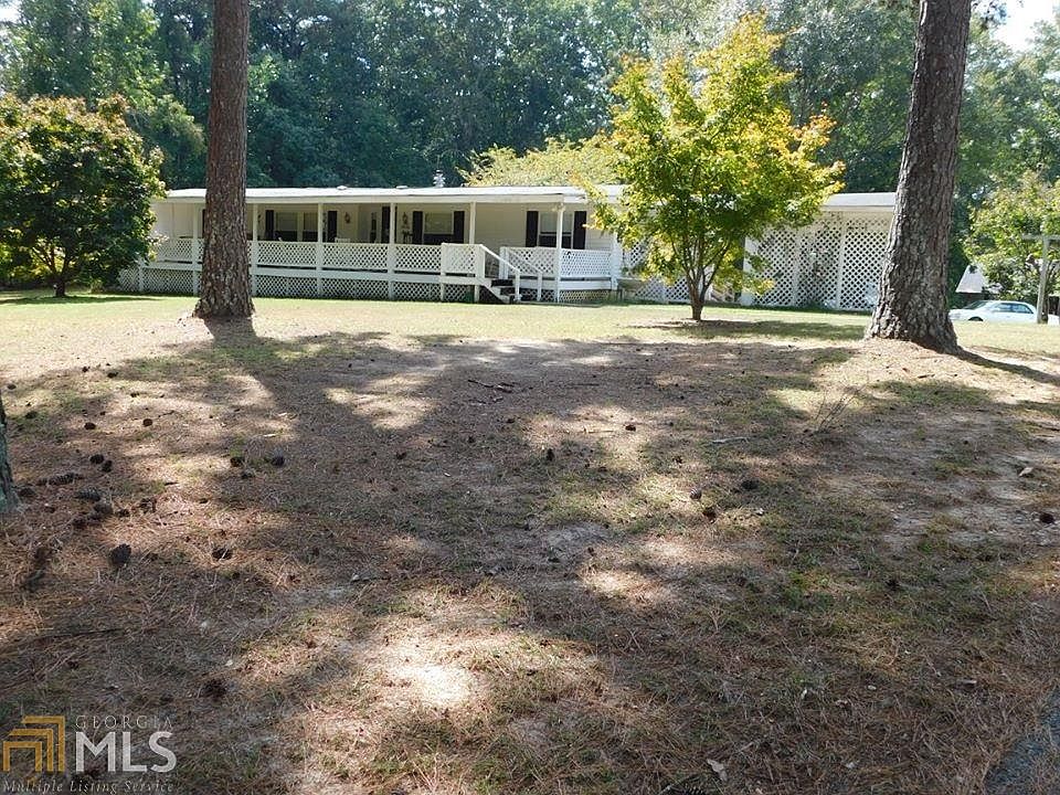 Beautiful setting on 20+ acres*2 lakes*multiple fruit trees, scuppernong vines; garden area. Pole barn, garage, workshop, drive-on ramp for working on cars*Beautiful 3 bedroom plan* dining room, breakfast area, fireplace in great room. Super sized front porch the full length of this home. Beautiful sunroom on rear of home*partial basement which is also used as a storm shelter/man cave. So many extras which are too numerous to list. Please show and sell!!