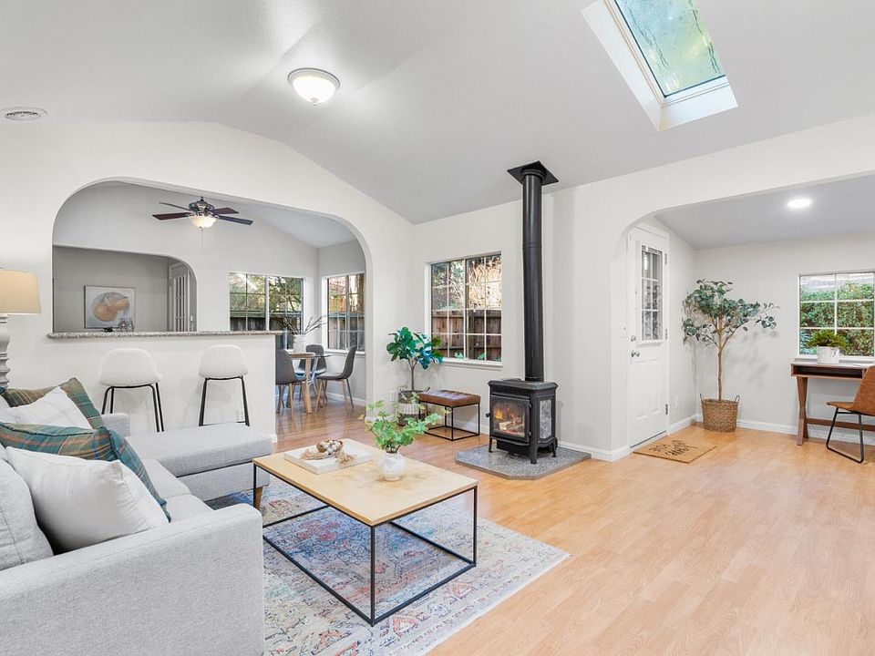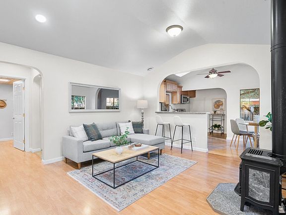 Nestled amidst the towering redwoods of Ben Lomond lies a charming single-level haven, where every detail whispers tranquility and possibility. Bathed in natural light pouring in from numerous skylights scattered throughout, the interior exudes a sense of warmth and openness, inviting you to unwind and embrace the serenity of your surroundings. The vaulted ceilings add to the openness and functionality. Relax and soak in your Jacuzzi tub. Built-in cabinets provide even more storage options leaving your living spaces uncluttered and serene. The screened-in porch offers breathtaking views of the surrounding redwoods. The spacious yard is a canvas of endless possibilities awaiting your creative touch. Storage options are plentiful with three sheds and under house storage offering ample space to stow away belongings. The coveted Tesla Powerwall backup battery system ensures that your home remains powered and your appliances running smoothly, allowing you to weather any storm with grace and ease. Located just moments away from the shops and restaurants of downtown Ben Lomond, this property offers the perfect blend of seclusion and convenience, allowing you to enjoy the best of both worlds and is sure to leave you feeling rejuvenated and inspired.