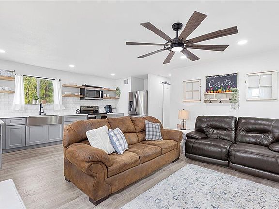 Welcome to this beautifully remodeled 4-bedroom home, nestled on a serene and private 2-acres, complete with a 600 sqft casita! The casita is perfect for multigenerational living, hosting guests, or generating rental income. Multiple sections of the property are fenced. Horses, chickens and farm animals are allowed. The main residence features a 3.5-car attached carport, plus a new roof (2022), updated siding (2022), and fresh exterior paint (2022). Inside, an open and inviting floor plan filled with natural light welcomes you. The gorgeous kitchen includes quartz countertops, a breakfast bar, stainless steel appliances, abundant stained wood cabinetry with pull-out drawers, a classic subway tile backsplash, and a walk-in pantry. The spacious living area is highlighted by a stone fireplace and peaceful backyard views, while the nearby flex room with a custom built-in entertainment center provides the perfect secondary living space. The laundry room has also been beautifully updated and includes a sink for added convenience. Retreat to the spacious primary suite, while three additional bedrooms offer flexibility for guests, a home office, or hobbies. Step outside to enjoy both a covered patio and an extended open patio—ideal for BBQs, relaxing evenings, or entertaining. The private casita lives like its own home, complete with a full kitchen, living area, bedroom, full bath, laundry room, private driveway, and additional parking. As a bonus, the HOA fee is just $100 per year, with a low tax rate! Community amenities include a pool, ATV and horse trails. Located just minutes from State Hwy 29 and US 183, with easy access to nearby shopping, dining, and grocery options. With plenty of space to roam, thoughtful upgrades, and versatile living arrangements, this unique property truly offers the best of both comfort and function!