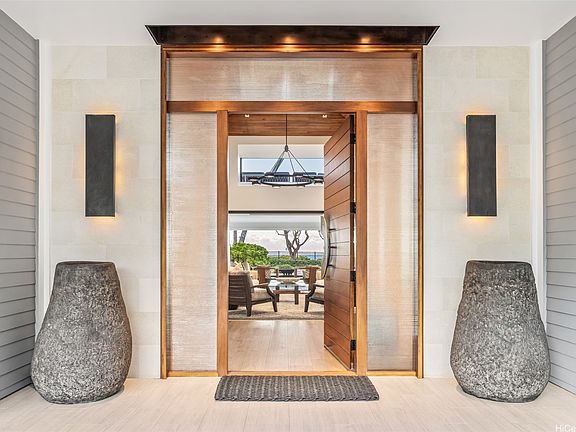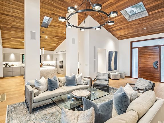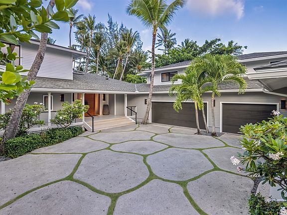 AMAZING NEW PRICE! Experience tranquil beachfront living in one of the most pristine areas along Kailua Beach, featuring stunning ocean views from the modern kitchen, spacious living room, and primary bedroom with a private oceanfront deck. Recent renovations include stylish baths that enhance the contemporary vibe. The custom kitchen flows into a welcoming dining area, ideal for gatherings and entertaining. A cozy cottage offers guest privacy, while ample parking and a three-car garage provide convenience. A dedicated office with courtyard access creates a peaceful workspace. Enjoy the lagoon pool and waterfall spa, with the beach just steps away for swimming, paddleboarding, or relaxing. Minutes from Kailua Beach Park, Mid-Pac Country Club, and Kailua Town, this home combines luxury and convenience. Your dream island lifestyle awaits!
