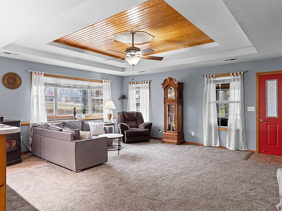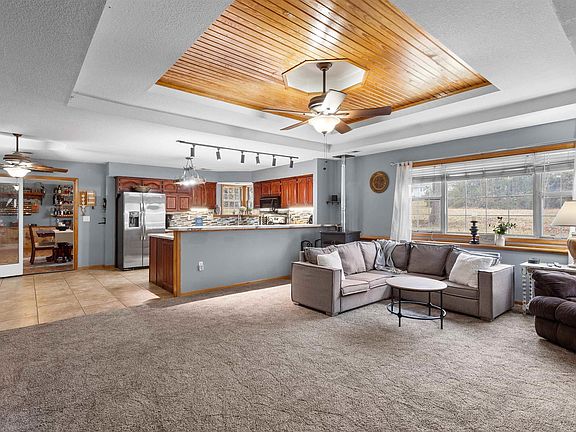 Spacious corner lot located on the edge of McLouth. Sprawling ranch home that features two primary en-suite bathrooms, a large rec/formal dining space and an oversized 50x30 attached shop with two garage door entrances to allow for covered parking, in addition to an additional 1/2 bath in shop and workshop area. Secluded back patio that has exterior exits from both primary bedrooms that allow for a private space to enjoy the hot tub that stays with the property.