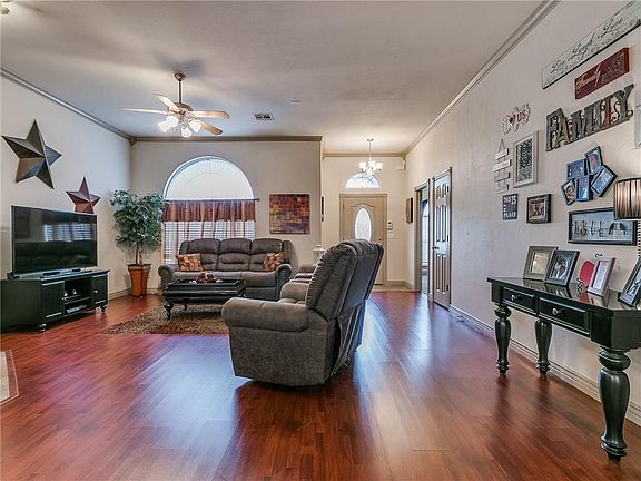 Come see this beautiful 4 bedroom home located in The Woods. Moore school district! This home is wide open and has lots of space and storage. Tile and laminate floors everywhere except the bedrooms. Large master suite with a fireplace, big tub and walk-in closet. This is a must see and wont last long. Large back yard with lots of potential.