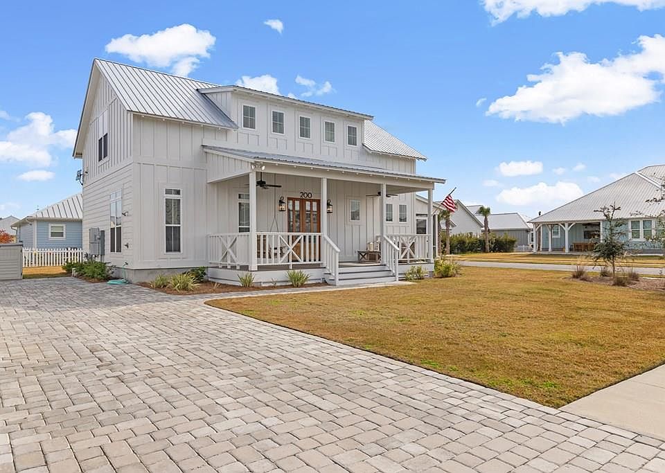 Welcome to your dream beach retreat! This almost-new, custom-built home sits on a prime corner lot and is packed with thoughtful details, as the owner designed it for their own enjoyment. From the stunning custom brick entry flooring to the efficient Renai water heater and spray foam insulation, no detail has been overlooked. Discover hidden gems like the secret playroom and the one-of-a-kind repurposed barn wood kitchen hood. With 4 spacious bedrooms, there's plenty of room for the entire family. The expansive porches are perfect for unwinding and entertaining. Enjoy the community amenities, including sidewalks, a pool, and a clubhouse. Just a short stroll to the beach, this beachy farmhouse offers the best of both worlds—coastal living with modern comfort.