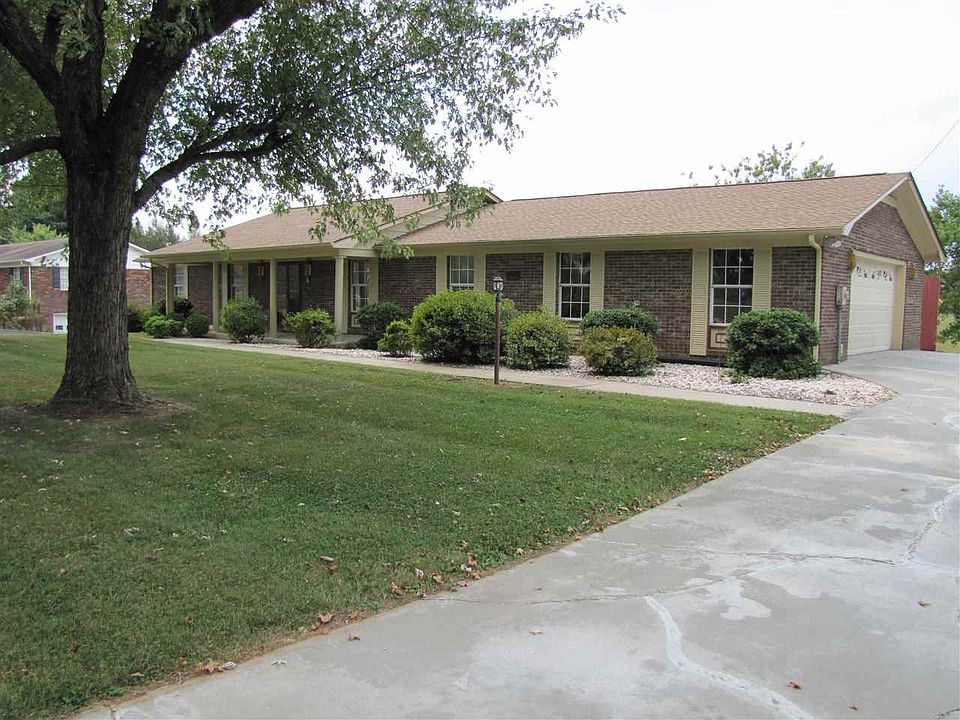 Full brick rancher with 2 car main level garage and drive in basement, hardwood floors, new paint and carpet, 2 fireplaces, screened porch, great location.