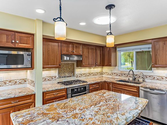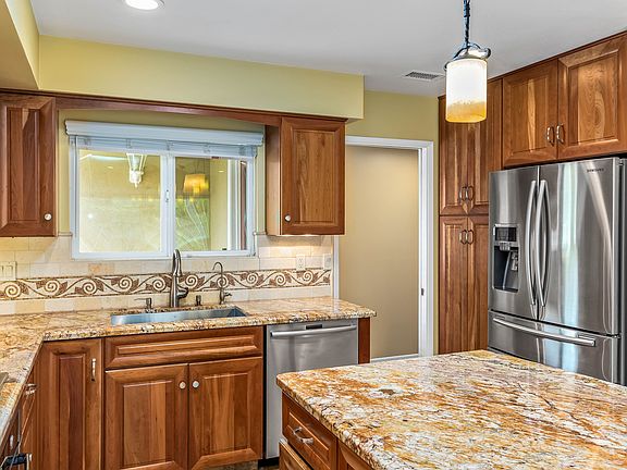 Beautifully remodeled Goleta North 4 bedroom, 2 bath home. Open concept living space with kitchen, dining area & living room with access to the back yard. The kitchen has custom cabinets, granite counters, stainless appliances & island with breakfast bar. Master bedroom has ensuite bathroom, custom closet system, remodeled bath. Additional three bedrooms all have closet systems. Hall bath has also been updated. Wood floors in living room, hallway & bedrooms, tile in kitchen & bathrooms. Back yard is private with paver patio & lawn area, nice landscaping, fruit trees. Paver driveway, 2 car garage with washer, dryer & water softener. One block to Evergreen open space, close to schools & shopping. Tenants pay all utilities, owner pays gardener. Pets considered. Available 10/1, one year lease.
