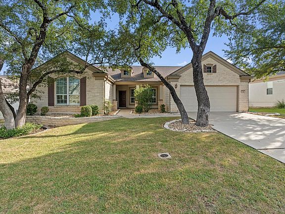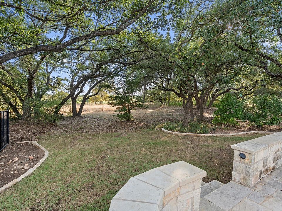 Plentiful rear windows frame views of the deep and woodsy greenbelt at this choice Sun City Texas Coronado plan with easy access to top-notch amenities brimming at his deluxe active-adult resort. After greetings from a wooded and neatly-landscaped front yard, a front sitting porch invites you to stay awhile. Inside, a Rotunda Foyer welcomes you with crown molding and trim molding, while introducing the Separate Dining viewing the front yard and streetscape. Ahead, tile floors blanket the spacious Great Room, where a well-placed corner gas-log Fireplace leaves ample wall space for furniture placement. Floor-to-ceiling custom built-ins form a Library or Games Room at the Four Seasons Room, a wonderful Sun Room, where twin sets of full-view glass doors reveal the two-tiered terraces and the splendid greenbelt location. Those same wonderful vistas repeat at the bayed Breakfast Nook, a casual eating area. Steps away, a large Island Kitchen shows that it is the heart of the home, where granite counter tops, gas cooktop and stainless-steel appliances join with a handy Menu Desk and Pantry Closet for a joyful cooking experience. Off the Foyer, a king-sized Primary Bedroom opens to the en suite Primary Bath with split dual vanities and a roomy Walk-In Closet. Across the home Three Guest Bedrooms offer plenty of choices for a Hobby Room, or Office-at-Home, while a clever Walk-Thru Guest Bath gives immediate access to each of the Three Guest Bedrooms. Meanwhile, a window adds natural lighting at the perfectly-placed Laundry. Be sure and see the generous Two-Car Garage and of course the wonderful Location, Location, Location best enjoyed from the classic stone terraces, a true outdoor retreat. With its great bones and first-class location, this home is one to see and ponder.