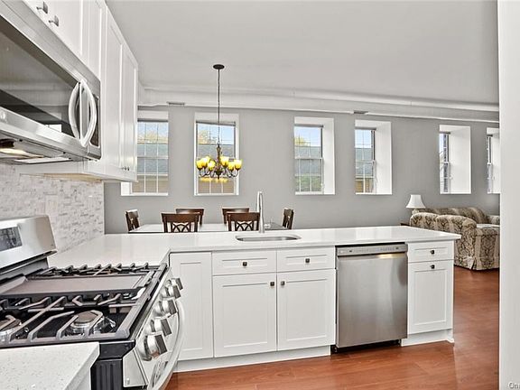 The best of both worlds - urban chic meets the tranquil setting of Westchester County. As you approach the historic School House Lofts at Chapel Hill, the 100-acre enclave with unrivaled amenities will draw you in immediately. The transformation the school house has produced artfully-styled loft condos desirable for today's discerning buyers. Step inside and be welcomed by the open concept space highlighted by 14-foot ceilings and new flooring throughout. The gut-renovated kitchen is the centerpiece, with new crisp white shaker cabinetry, stone countertops, brand new stainless appliances, recessed lighting and a large peninsula to gather around. It's the ideal spot for entertaining with the dining room and living room open to all. Bonus space off the living room is perfect for a home office, reading nook, yoga/Peloton studio or whatever your heart desires. First bedroom suite features a private bathroom with double vanity, step-in shower and roomy walk-in closet. Additional bedroom suite features a private bathroom with tub and large walk-in closet. Entire loft has been freshly painted, has custom window blinds, new furnace and a one-car garage with additional storage just steps away. Chapel Hill setting is truly remarkable with a walking trail, playground, bocce courts, pickleball, tennis and an outdoor pool and kiddie pool. The lifestyle center features a gym, exercise classes, sauna, basketball and a busy activity calendar. Close to Peekskill Metro-North train station, parks, Blue Mountain Reserve, stunning waterfront, restaurants and all Peekskill has to offer. Come see for yourself why so many people want to call Chapel Hill home!
