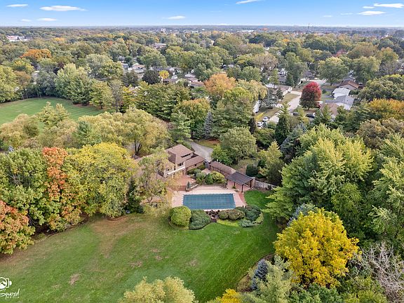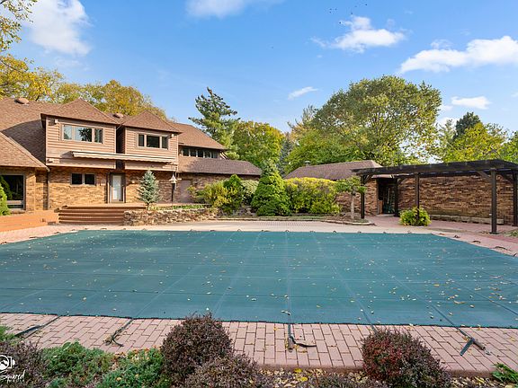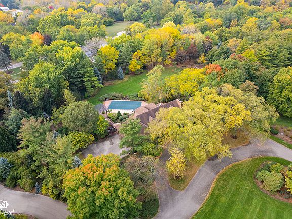 Experience the perfect balance of privacy, and convenience in this exceptional brick and cedar two-story residence. Nestled on two professionally designed acres alongside a private drive, this secluded retreat offers the feeling of a country estate while being minutes from every amenity. Step into a grand living room with soaring vaulted ceilings, a striking brick fireplace, and expansive picture windows that capture breathtaking views of the meticulously landscaped grounds. The kitchen features abundant counter space, a spacious breakfast area, and effortless flow into the formal dining room, ideal for both intimate dinners and elegant entertaining. A main-floor office provides a quiet space for work or study, while a convenient laundry room enhances everyday functionality. Upstairs, an open loft overlooks the main living area, adding architectural drama and light. Two generously sized bedrooms share a full bath, while the primary suite offers a private sanctuary complete with a walk-in cedar closet, ensuite bath, and a private balcony with tranquil views. Gleaming hardwood floors and fine finishes elevate every room. The heated three-car garage accommodates vehicles and hobbies with ease. Step outside to your own private resort-featuring a sparkling in-ground swimming pool, pool house with a full bath, and expansive decks designed for outdoor entertaining and relaxation. The lower level is pristine and bone dry, showcasing original rustic charm with tile flooring and cedar walls. Designed for both relaxation and recreation, it includes a spacious family room, game room, full bathroom, storage areas, and even a dark room for photography enthusiasts. A hidden staircase connecting the garage to the basement adds a unique and practical touch to this remarkable home. This rare offering combines timeless architecture, thoughtful design, and lush natural beauty-all within moments of shopping, dining, and top-rated schools. A truly exceptional property for the discerning buyer seeking luxury, privacy, and convenience in perfect harmony.