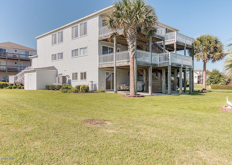 Views Galore and Direct Intra Coastal Waterway with a shared dock to your boat lift! This 3 bedroom 2 1/2 bath right side of duplex offers you a reverse floor plan. Garage, waterside room to use as you choose, storage & patio on ground level, bedrooms & laundry 1st floor & living area top floor. Newer carpet in the bedrooms. Laminate wood floors in Great room & kitchen. Kitchen has stainless steel gas range & solid surface counter tops. Decks off master suite, road side bedroom & top floor great room/living areas. Furnished if you want. Possession negotiable. Ten minutes to MARSOC & MCB Camp LeJeune Sneads Ferry Gates. Call today to view your next home.