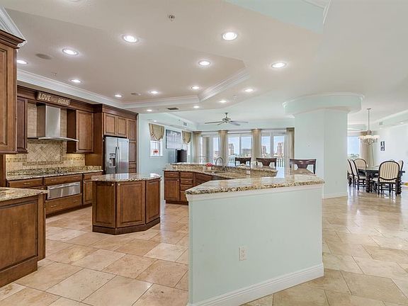 Luxury Penthouse Living with Breathtaking Views in Clearwater Beach! Experience elevated coastal living in this stunning penthouse condo, perfectly situated in the exclusive Majestic Point on Island Estates—right in the heart of beautiful Clearwater Beach. This spacious 3,656 sq ft residence features 3 bedrooms plus a dedicated office, 3 full bathrooms, a private boat slip, two under-building parking spaces, and abundant storage. With only two units on the top floor, privacy and exclusivity are assured. Enjoy sweeping views of the Intracoastal Waterway and the Gulf, sunsets are yours every evening from the expansive balcony. Inside, you’ll be impressed by the open, airy layout and elegant details like crown molding and soaring ceilings. The chef’s kitchen is beautifully equipped with granite countertops, an island, stainless steel appliances, including a wall oven, cooktop with ventilation hood, warming drawer, refrigerator, and dishwasher. A unique prep sink with a foot pedal faucet adds both convenience and charm. The kitchen opens seamlessly to the living, dining, and casual sitting areas, all adorned with power shades on west-facing windows and doors, plus a central vacuum system. From the living areas, step out to the large balcony—perfect for relaxing or entertaining guests. Just off the entry, you’ll find a versatile office or workout room to the left, and to the right, a spacious laundry room with cabinetry, utility sink, and a full bath with shower. The primary suite is a true retreat, featuring ample space for a sitting area, power shades, private balcony access, a massive organized walk-in closet, and a spa-like bath with jetted tub, oversized glass shower with body sprays, double vanity, and more Gulf-facing views. The second bedroom has access to a full bath with a tub/shower combo, and the third bedroom offers generous space with dual closets. A built-in office/workspace in the wide hallway adds even more functionality. This condo truly has it all—unmatched location, generous square footage, spectacular views, pool and spa, boat dock with lift, under-building parking, and premium finishes throughout. Schedule your private showing today and discover the best of Clearwater Beach living!